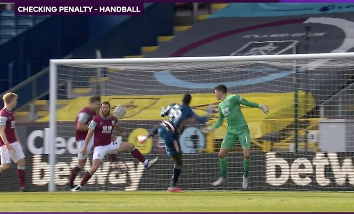 Везунчик дня – Эрик Питерс из «Бернли»: ВАР проспал его игру рукой, а потом еще и отменил пенальти и красную в другом моменте (там было плечо)