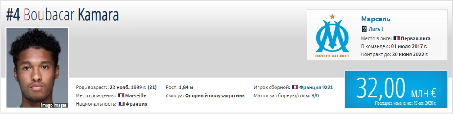 На пятое место нашего мини топа поставим Бубакара Камару. Он самый возрастной в нашем топе. В прессе писали, что футболистом интересовались многие топ клубы Европы. Сайт transfermarkt сейчас оценивает Камара в 32.000.000 евро и он самый дорогой футболист Марселя и 11-й по стоимости во всей лиге.Из качеств выделим физические данные, неуступчивость и цепкость в борьбе за мяч, отбор, скорость и выносливость.