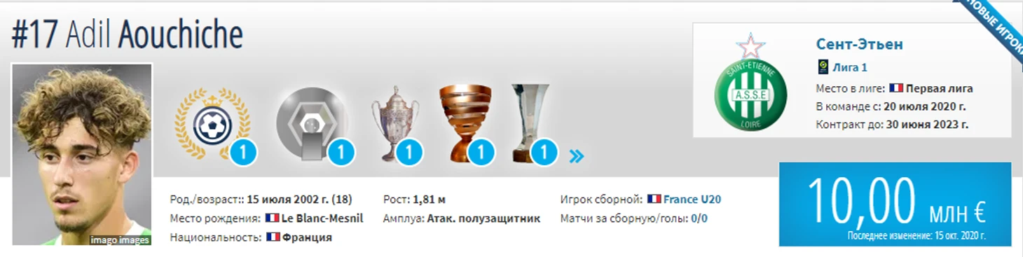 Я просто не мог не включить в свой топ-5 Адиля Ашиша, так как у парня есть отличная пресса и сильный характер. Не только из-за своих алжирских корней Аушиши сравнивают с Зиданом, но и из-за изящной манеры игры, он способен играть обеими ногами. Как очень техничного игрока с высоким уровнем точности паса. Адиль Аушиши показывает лучшую игру, когда выступает в качестве под нападающего. Да, можно сказать, что парень выбрал деньги при переходе в Сент-Этьен и поэтому из него не получится топ футболиста, но посмотрим, что в итоге произойдёт.