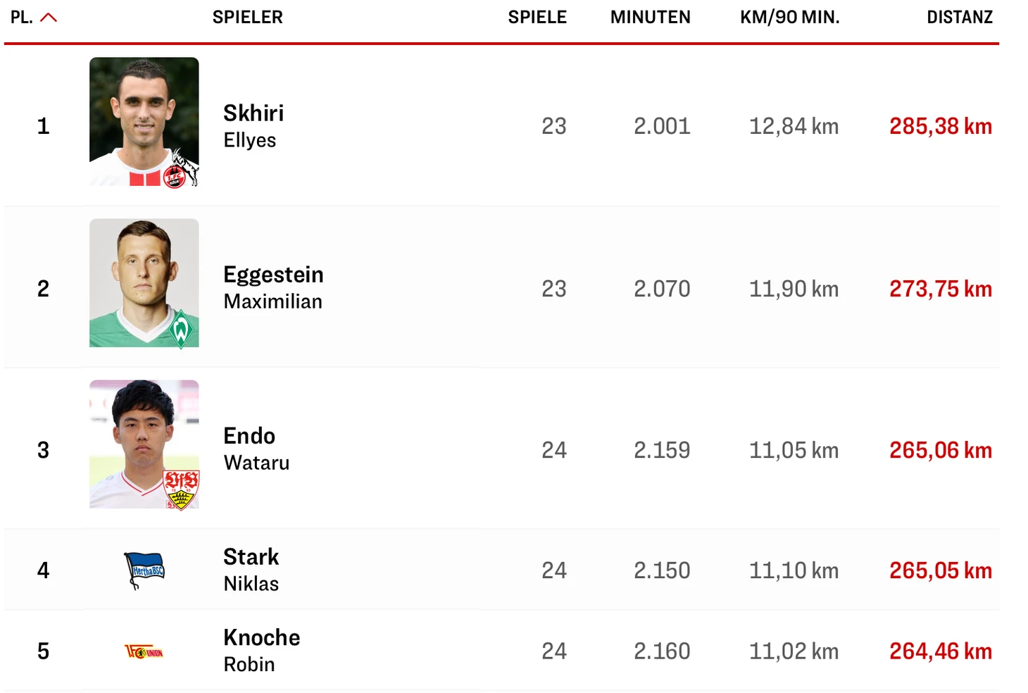 *игрок – кол-во игр – кол-во минут – в среднем км за 90 мин – всего км