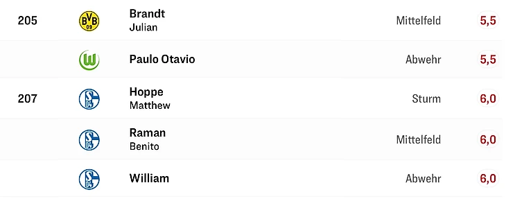 *игрок – позиция – кол-во игр – кол-во оцененных игр – оценка