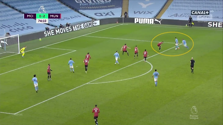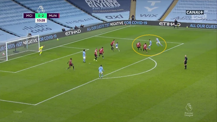 Если «Сити» разыгрывал мяч справа, Рэшфорд передавал португальца Фреду, а сам выдвигался на свободного Джона Стоунза: