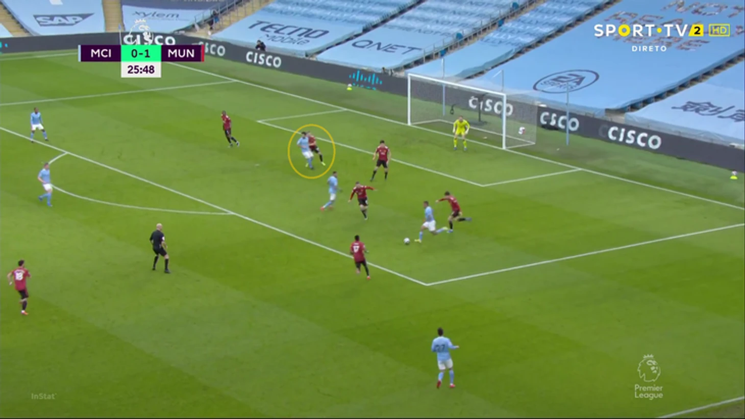 Это затрудняло «Сити» привычный выход в атаку и вдобавок не нагружало оборонительных игроков «МЮ» (могли сэкономить силы перед действительно мощным давлением хозяев). Бонусом стали опасные ситуации в случае потерь «горожан» на своей половине. В первые 20 минут их набралось четыре штуки. Это больше, чем в двух предыдущих матчах «Сити» (по 2 – против «Вулвз» и «Вест Хэма») – неплохой показатель эффективности «МЮ».