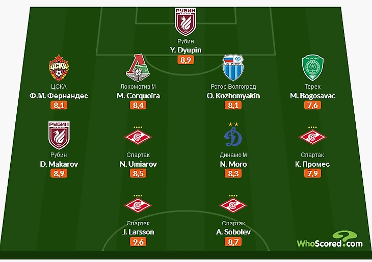 Представляем вашему вниманию сборную лучших футболистов очередного тура Российской Премьер-Лиги по версии портала WhoScored. На этот раз в ней оказались четыре представителя московского "Спартака".