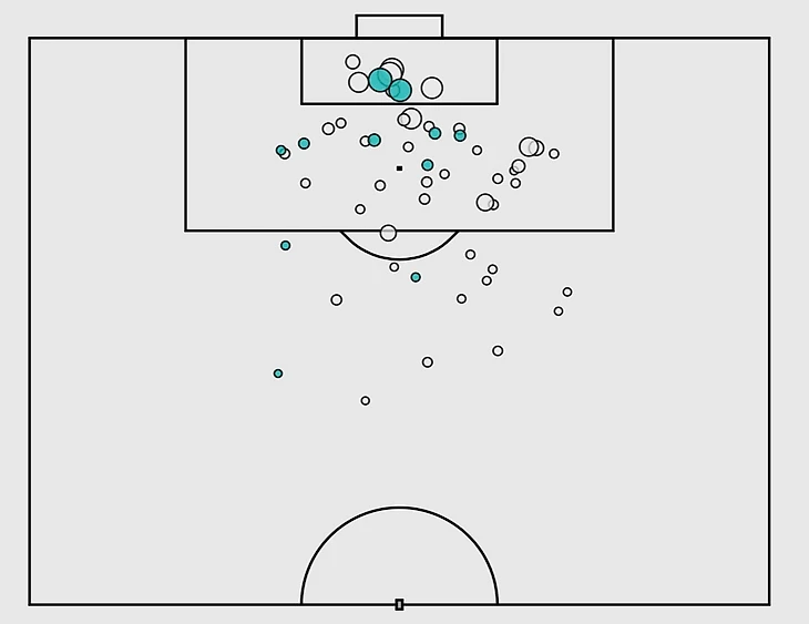 Для наглядности сравните шот-мапы Райана в "Суонси" и в "Шеффилд Юнайтед"(белые-не гол, бирюзовые - гол):