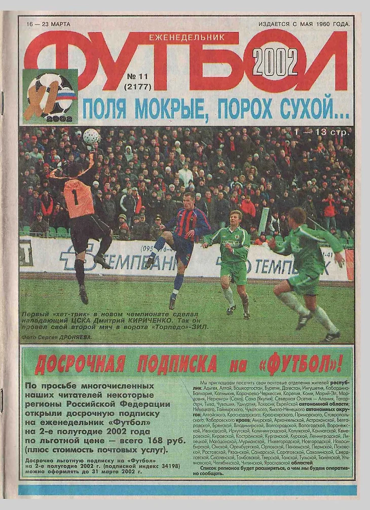 Провал на ЧМ, 1:18 в ЛЧ, «Локомотив» – чемпион. 2002 год в обложках еженедельника «Футбол»