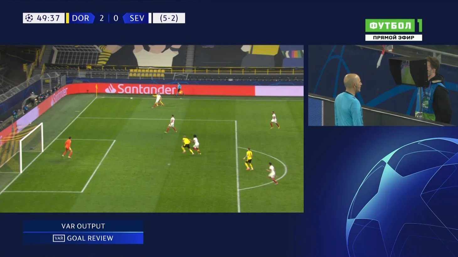 Но веселье только начиналось – Джюнейт Чакыр отправился к экрану для проверки эпизода. Судье подсказали, что Холанд не по правилам подвинул опорника «Севильи». Внимание на монитор.