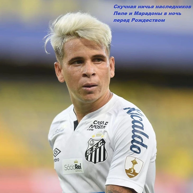 Такая вывеска полуфинала Кубка Либертадорес, которую решил показать Матч ТВ в ночь перед Рождеством, не могла не интриговать. Еще бы, наследники Пеле и Марадоны в одном шаге от игры за большой трофей. Однако матч оставил полнейшее разочарование, не запомнившись вообще ничем. Возможно, сказалось то, что это была первая из двух игр. Вторая-то, завершившаяся разгромом аргентинского клуба, вышла явно веселей. Но она в обзор не попадет. А по тогам этой герой довольно формальный. Просто самый приметный из всех, бывших на поле. Венесуэльская «десятка» «Сантоса» Йеферсон Сотельдо. Но и о нем пока нельзя сказать чего-то интересного. Пусть будет считаться авансом.