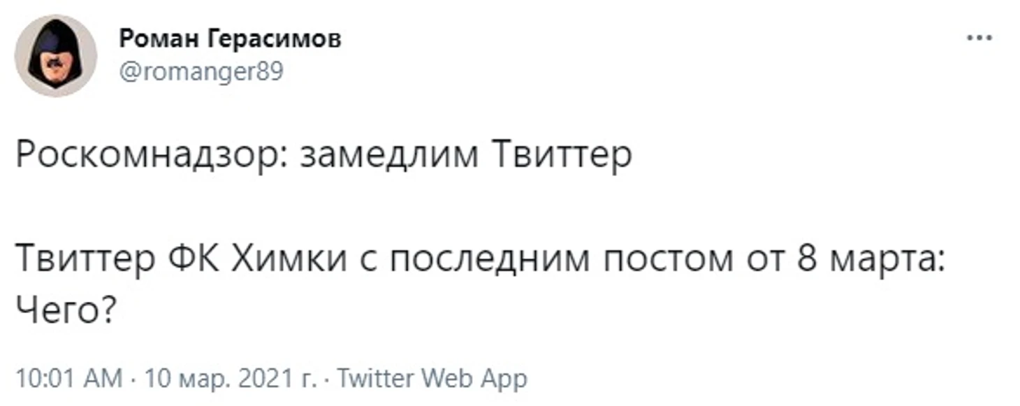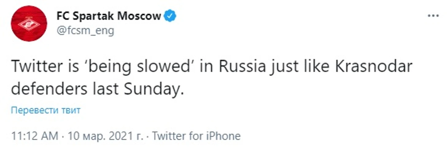 А в англоязычной прибил соперника: «Твиттер в России «замедляется», как и защитники «Краснодара» в прошлое воскресенье».