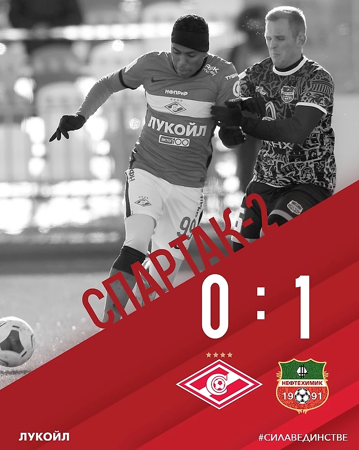Пресс-конференция. «"Нефтехимик" — хорошая команда, — сказал главный тренер «Спартака-2» Роман Пилипчук. — Мы провели глубокий анализ и были готовы к тому, что соперник может преподнести. Считаю, что мы не дали «Нефтехимику» сыграть в тот футбол, в который он может сыграть. При этом создали много моментов у ворот соперника. Надо было забивать. К сожалению, мы вторую игру имеем 200-процентные моменты, но не можем забить. Отсюда все очень просто: опять не забили — опять проиграли».