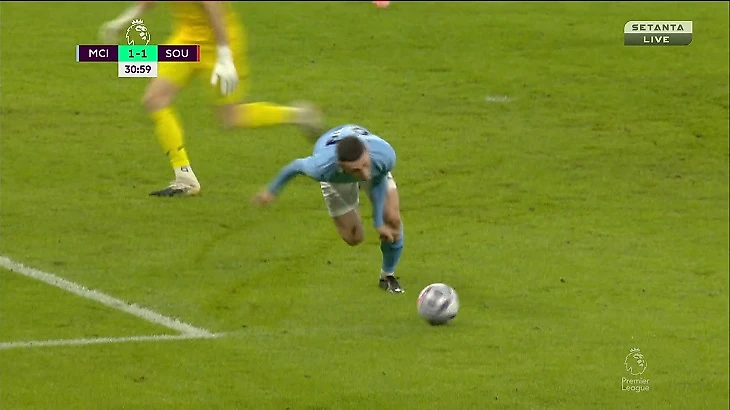 Фоден пострадал за честность: не завалился в штрафной, хотя вратарь попал в ногу – и не получил пенальти