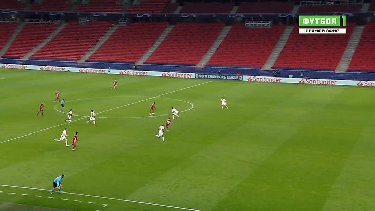 Именно египтянин начал атаку глубоко на своей половине поля. Взгляните на высокую линию защиты «Лейпцига» – идеальный клиент для скоростных нападающих «Ливерпуля».