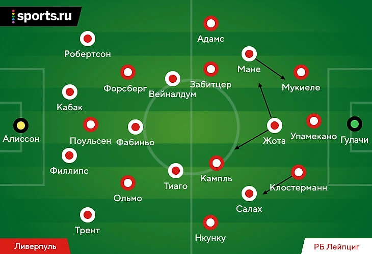 Прессингом команда Клоппа держала соперника на расстоянии. Вторая половина прошла с территориальным доминированием «Ливерпуля»: всего 21% действий команд в тайме совершался на трети «Ливерпуля» против 36% у «Лейпцига».
