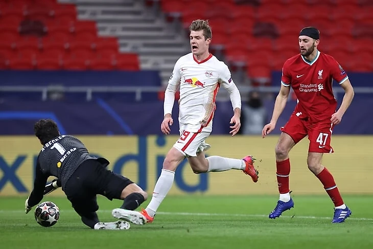 Но за тайм они организовали всего 3 навеса. Один из них даже привел к удару в каркас от Серлота. У «Лейпцига» было желание так играть. Это могло быть эффективно при такой защите «Ливерпуля», но они банально не добирались до нужных зон.