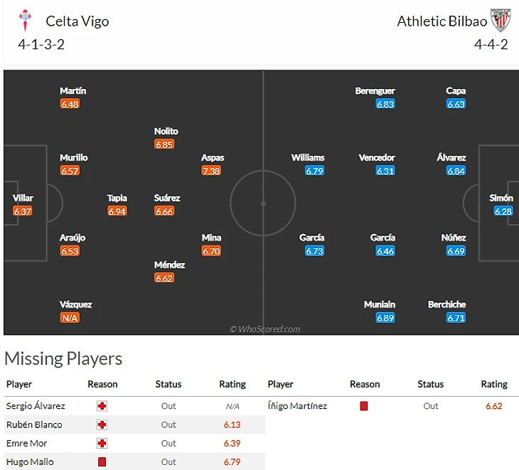 На что обратить внимание: На правый фланг обороны гостей. Из-за травмы Карселен(5,5) пропустит выезд в Страну Басков и играть на краю защиты по всей вероятности придется Фали(5).