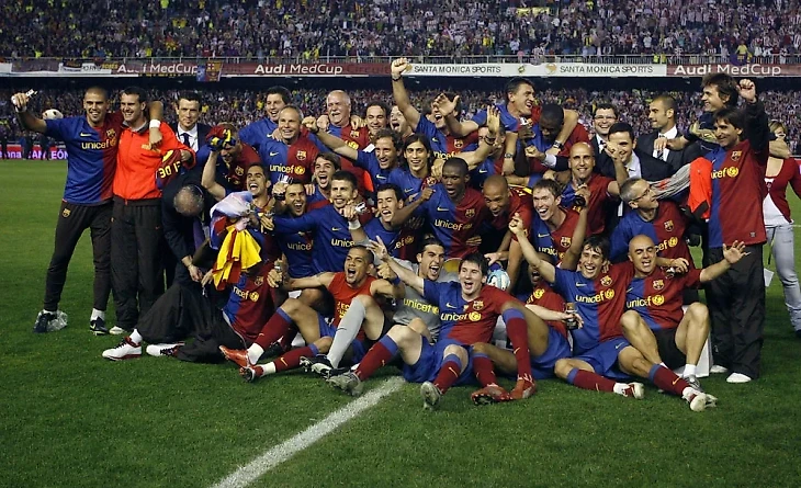В сезоне 2008/09 Анри улучшил персональную статистику и забил много красивых и важных голов, в том числе оформил дубль в матче чемпионата Испании против мадридского «Реала» на «Сантьяго Бернабеу» (6:2). 13 мая 2009 года футболист выиграл в составе «каталонцев» свой первый трофей — в финале Кубка Испании был разгромлен «Атлетик Бильбао» (4:1). В этом же году «Барселона» выиграла Примеру и Лигу чемпионов УЕФА, причём атакующая тройка, в которой кроме француза состояли Лионель Месси и Самюэль Это’о, за все матчи сезона забила сто голов, обновив предыдущий рекорд в 95 мячей, установленный в сезоне 1959/60 футболистами «Реал Мадрида» Ференцем Пушкашем, Альфредо ди Стефано и Пепильо. Кроме того, по итогам сезона, нападающий стал обладателем Суперкубка Испании, Суперкубка УЕФА и победителем Клубного чемпионата мира. Таким образом, за один сезон «Барселона» взяла все шесть возможных трофеев.