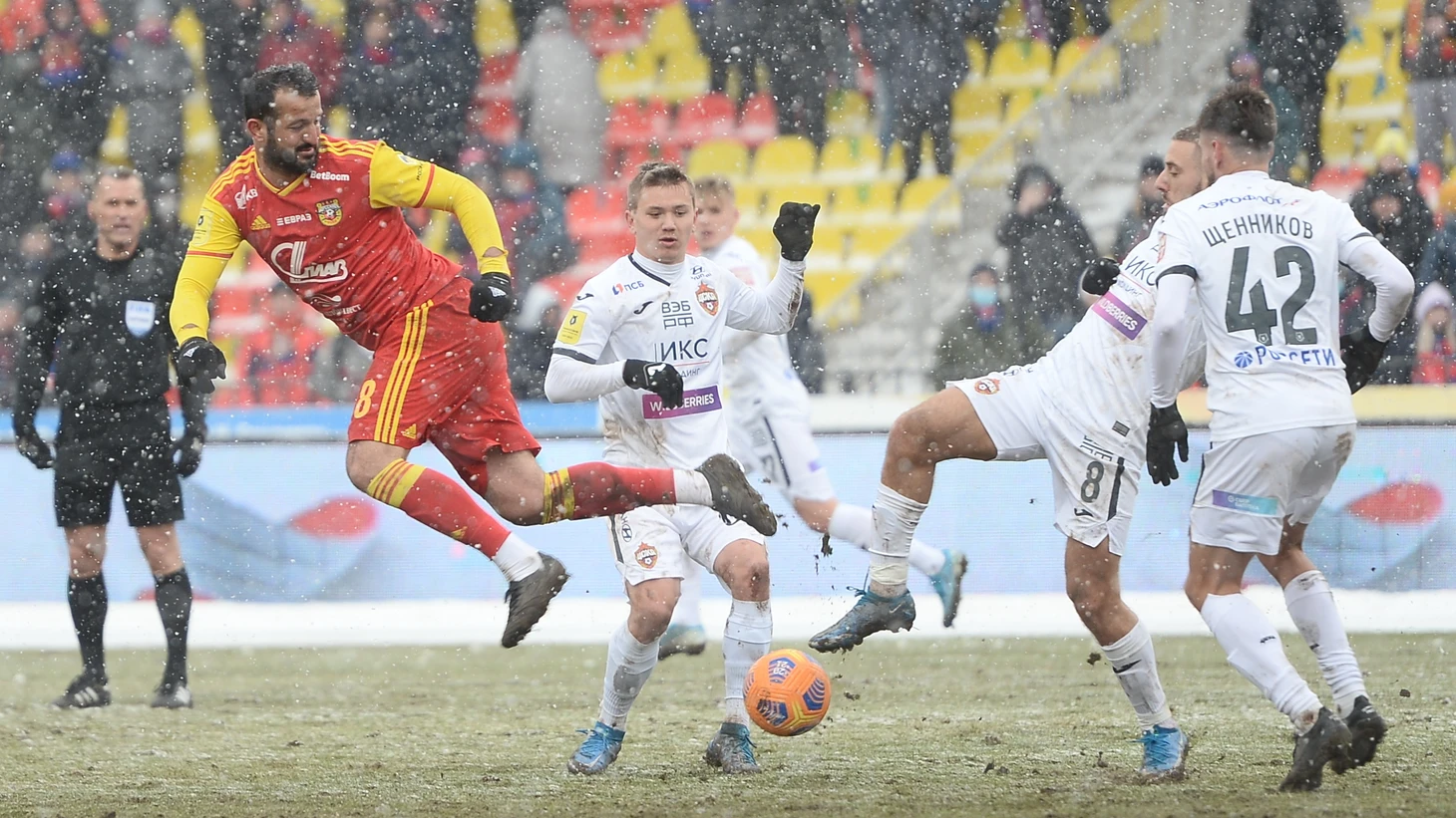 А вот армейскому коллективу давеча не свезло, ибо явился он в холодную Тулу, где выли злобные ветры да мела непроглядная пурга, вот и стоял на бровке Виктор Гончаренко, закутанный в хлипкий капюшон, сделал лицо попроще - да и какое сделаешь лицо, коли продувает тебя насквозь до самых костей, а тут еще и дружина твоя не радует ни красивыми голами, ни ажурными комбинациями, промахивается с метра Соломон Рондон, полено венесуэльское, а забивают тебе злейшие враги, птенцы гнезда красно-белого, Пантелеев да Ломовицкий, выкладывают из наглых пальцев заклятый ромбик, травят как быков на красную тряпку - и не ищите в сей метафоре намека на быков краснодарских, тех уже ни на что не натравишь, ибо труп на травлю не реагирует, покоится себе с миром, на далеком девятом месте, Галицкому на гордость да проклятой Москве на потеху.