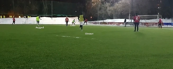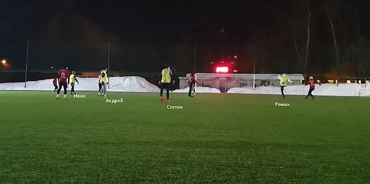 Где-то в районе линии штрафной ещё должен был быть Ваня, но он где-то в средней линии поэтому не в кадре.