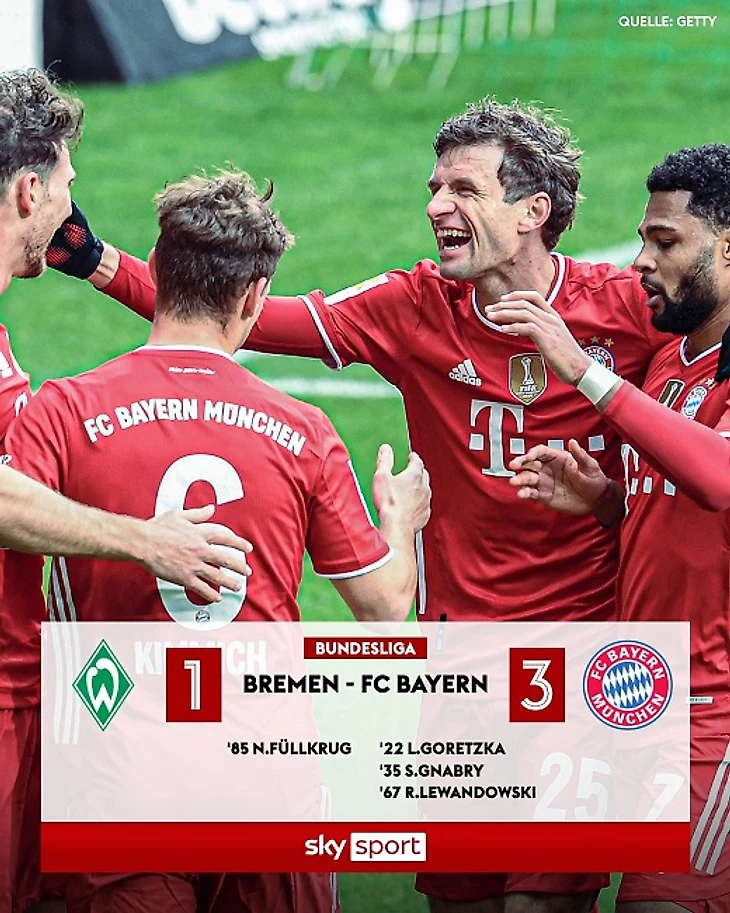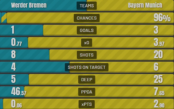 «Бавария» выиграла все последние двенадцать гостевых матчей Бундеслиги в Бремене. Это рекорд турнира, ещё не было такого количества выездных побед подряд.
