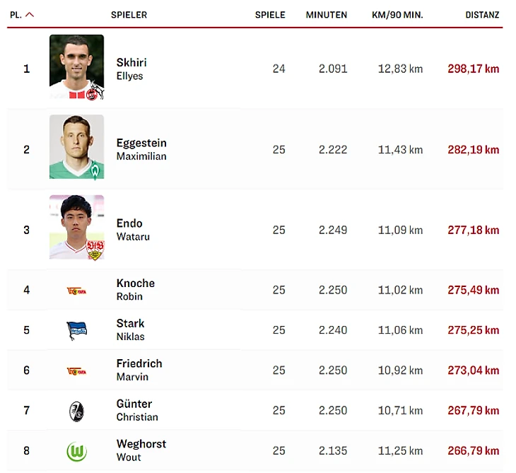 *игрок – кол-во игр – кол-во минут – в среднем км за 90 мин – всего км