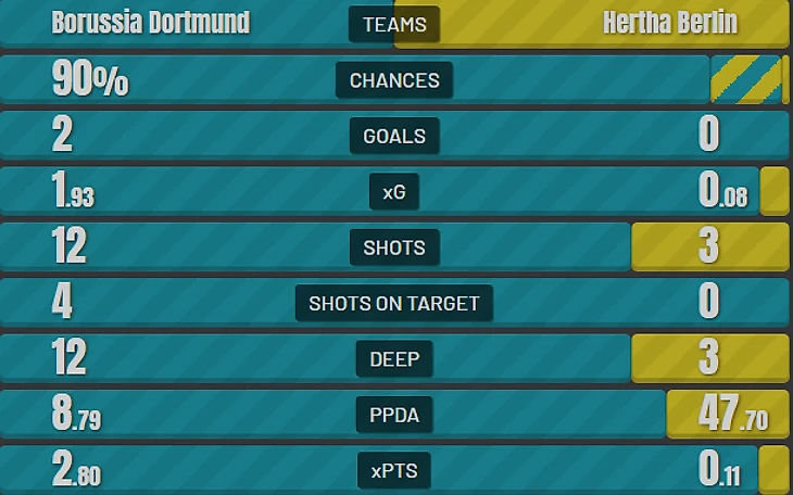 «Боруссия Дортмунд» выиграла пять последних матчей Бундеслиги против «Герты». Сейчас подобная победная серия у «шмелей» только с «Вольфсбургом».