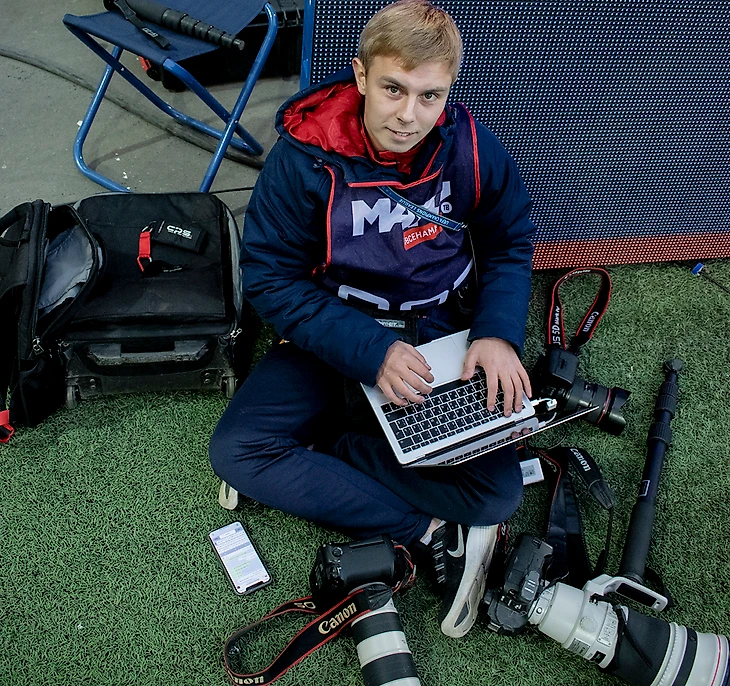 В ЦСКА я пришел в конце 2017-го по приглашению директора по связям с общественностью Сергея Павловича Аксенова. До этого семь лет работал фотографом и фоторедактором в «Чемпионате». Рабочий день всегда строится по-разному. В неигровые дни снимаю тренировки, мероприятия, организованные коммерческим отделом. Выходные, если и случаются, то только в будни.