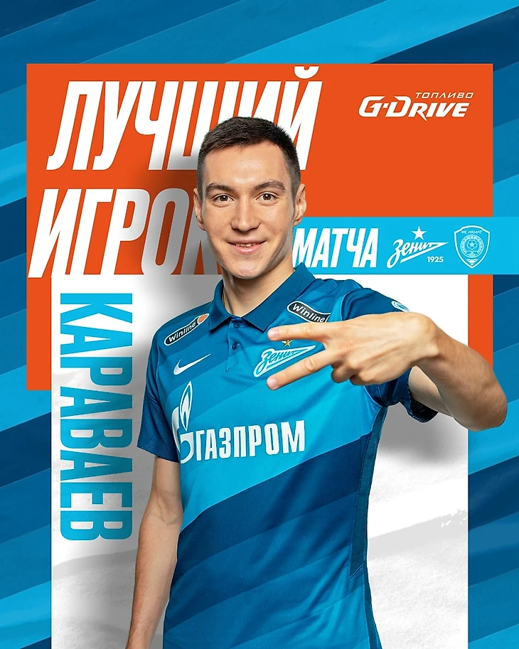 Вячеслав Караваев получил две награды: "Лучшим игроком" матча «Зенит» — «Ахмат» , а также «G-Drive. Лучший игрок»