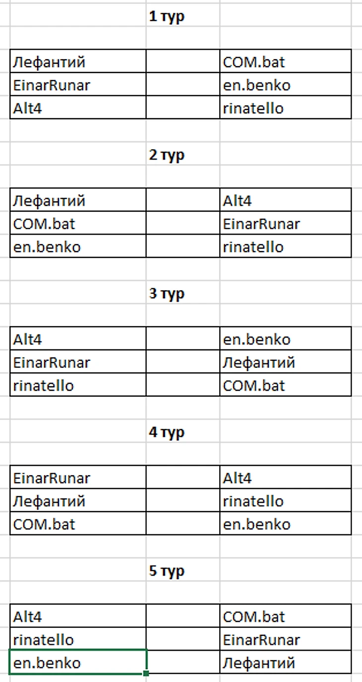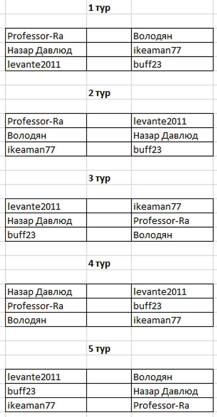 Напоминаю - по итогам второго этапа определяться пары которые будут бороться за 1, 3, 5 ... 11 места в оставшихся 3 турах!