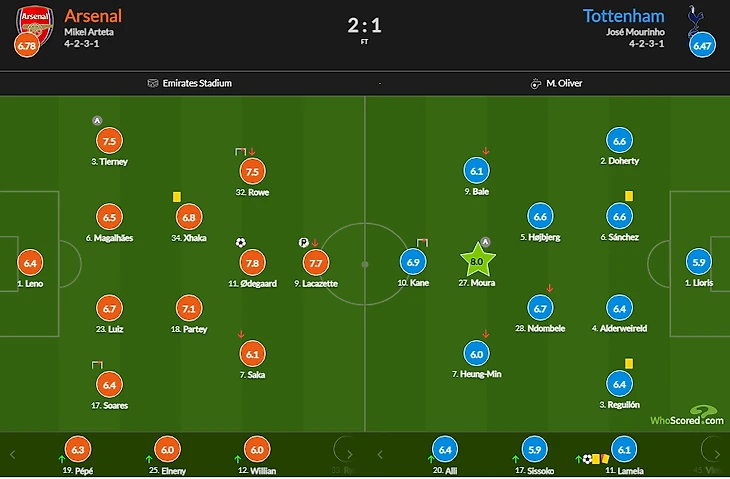 Очень хочется отметить Смит-Роу и Моуру, которые, хоть и не записали на свои фамилии результативных действий, провели просто роскошный и весьма убедительный матч. Моура, кстати, крайне хорошо на позиции гибкой 10-ки, хотя всю свою жизнь бороздил именно фланги.