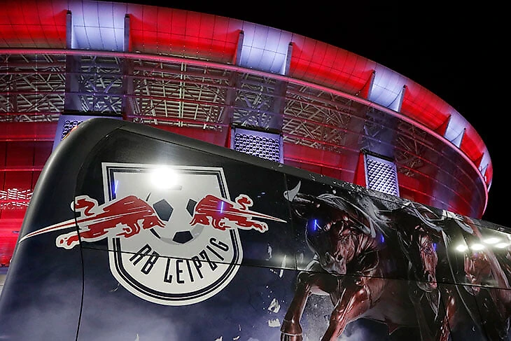 Организаторы матчей на «Пушкаш Арене» всегда используют подсветку, чтобы номинальный хозяин чувствовал себя как дома. Вот красно-белые стены (в цветах «РБ») перед игрой «Лейпцига» и «Ливерпуля».