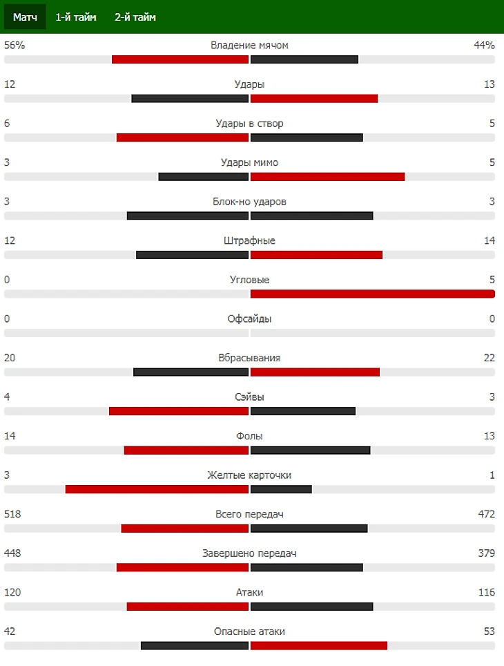 Первая игра далась Итальянцам очень не просто, на 17 минуте Фройлер получает красную карточку и оставляет свою команду до конца игры в меньшинстве. Понятно что победить при таких условиях очень сложно, и неудивительно что Аталанта проиграла первую игру с минимальным перевесом в пользу Сливочных 0-1. По статистике все еще более печально Итальянцам не удалось ни разу попасть в створ ворот соперника, и за два тайма они смогли лишь дважды ударить в сторону ворот.