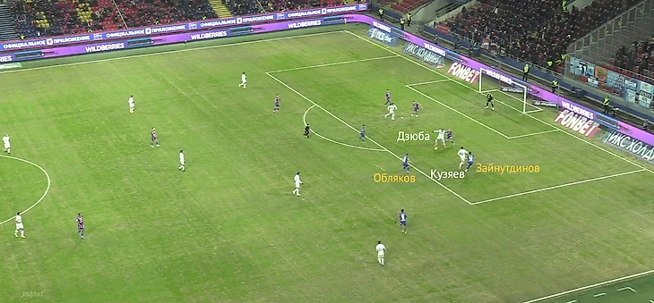 Обляков и Зайнутдинов не среагировали на движение Кузяева – в итоге Далер мог принять и передачу от Караваева, и пас от Дзюбы. ЦСКА спас Магнуссон, заблокировавший пас Дзюбы.
