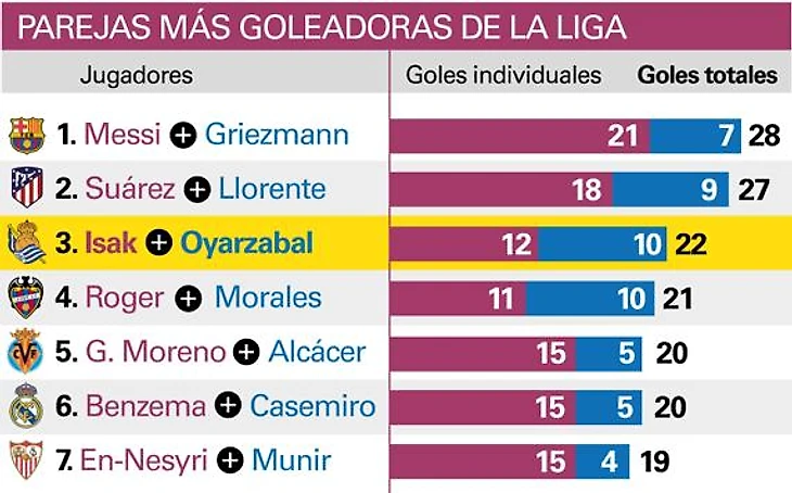 Цифры дуэта из «Реал Сосьедад» еще более примечательны, если учесть, сколько игр они сыграли совместно