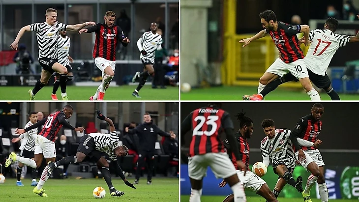Обе команды потеряли основных и даже запасных нападающих, потому ждать от предпочитающих играть в формациях близким к 4-2-3-1 игроков атакующего результативного футбола было нельзя. Милан так и вовсе вышел играть с двумя оттянутыми форвардами в лице Чалханоглу и Кастильехо, что вылилось в полное отсутствие остроты у ворот гостей. У МЮ Гринвуд вновь попытал счастье на острие, но навыка ему определенно пока не хватает.