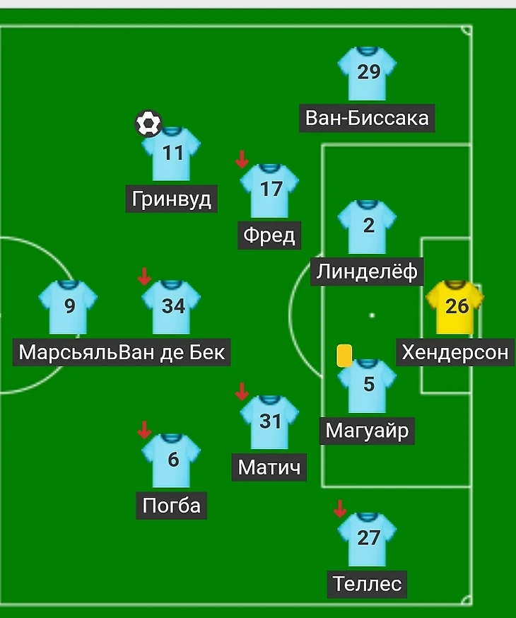 По сравнению с матчем против Милана, у МЮ было 5 изменений. Теллес вместо Шоу, Матич вместо Мактоминея, Ван Де Бек вместо Бруну, Погба вместо Рэшфорда и Марсьяль вместо Джеймса.