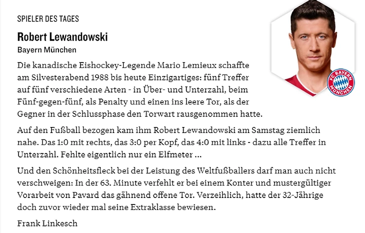 Единственным игроком Бундеслиги, который забил три гола в меньшинстве, ранее был Ульф Кирстен – леверкузенец в ноябре 1997 года забил трижды «Баварии».