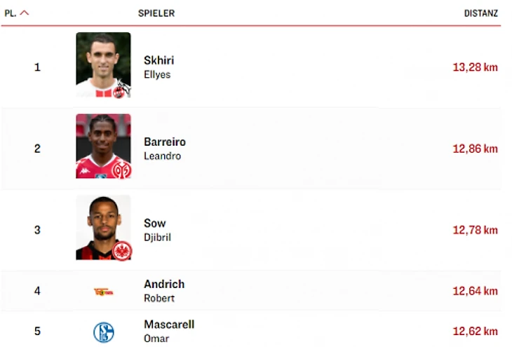 Нико Шульц стал самым быстрым игроком 26-го игрового дня (суббота) со скоростью 35,2 км/ч.