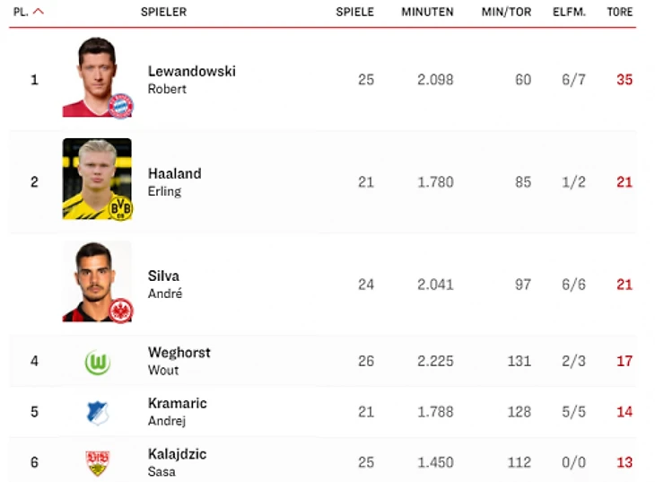 Воут Вегхорст повторил свой личный рекорд сезона 18/19 с 17 голами. В целом он забил свой 50-й гол в Бундеслиге. Отметку из 50 мячей в футболке «Вольфсбурга» ранее достигли только Эдин Дзеко (66), Графит (59) и Диего Климович (57).