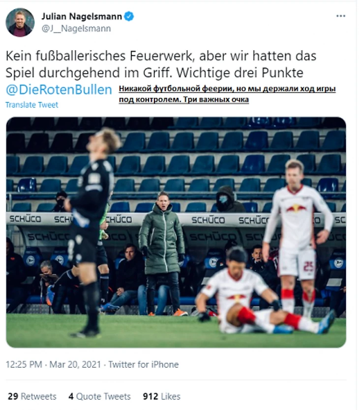 Собственно говоря, так и вышло. Не смотря на то, что гости 80% игрового времени владели мячом, забить у них долгое время не получалось. Речь об атаках «Арминии» не шла совсем. За всю игру хозяева ни разу не пробили в створ. В итоге судьбу поединка решила первая атака «РБ Лейпцига» во втором тайме. Дани Ольмо получил мяч на ход на правый край штрафной и в касание вложил его в ногу Марселя Забитцера, которому никто не мешал расстрелять ворота. Был еще один значительный эпизод, когда Эмиль Форсберг упал в чужой штрафной и все ждали 11-метровый. Поскольку швед ранее не был замечен за симуляциями, шансы на пенальти были огромные, но вот Вилленборг (рефери встречи) решил, что там спорная ситуация, и пенальти не назначил. «Арминия» явно не ударила в грязь лицом, однако поражение вновь сбросило ее в зону вылета, из которой теперь, глядя на календарь, видно что будет сложно выбраться. Ну а «РБ Лейпциг», пусть и ненадолго, но приблизился к мюнхенцам на расстояние одного очка.