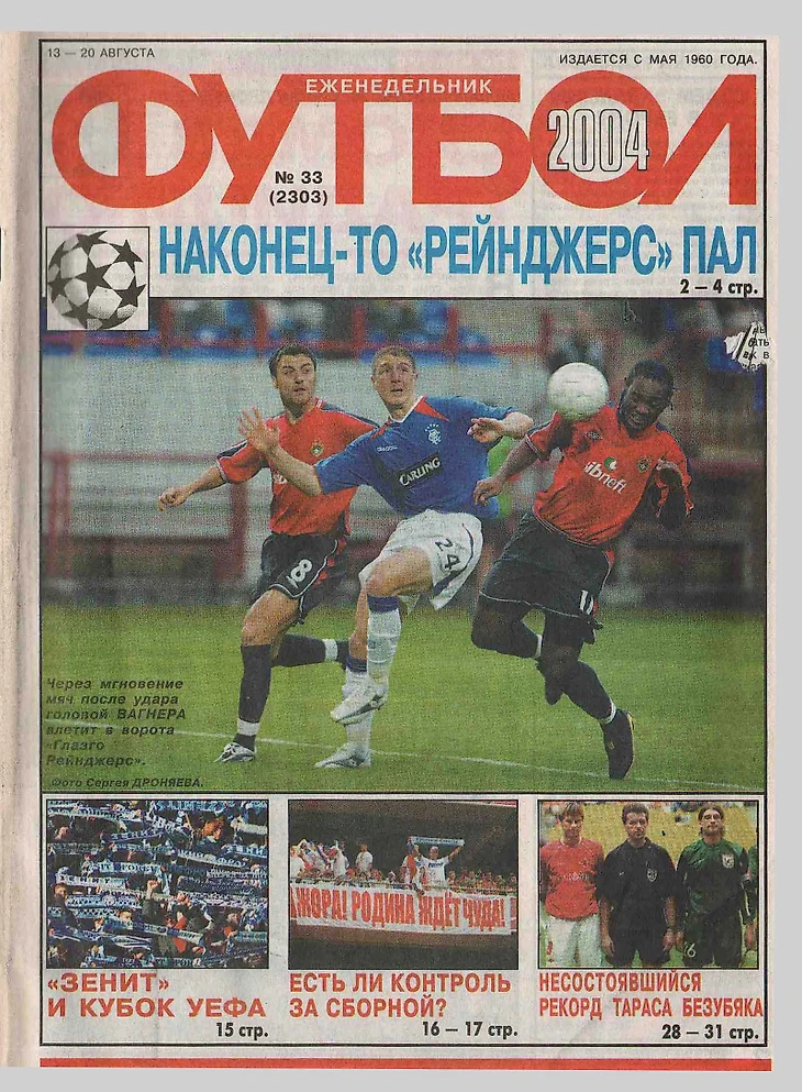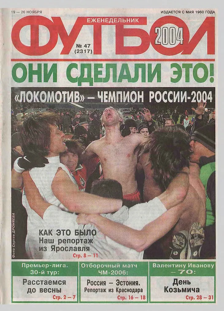 «Локо» – чемпион, 1:7 в Лиссабоне, «Терек» – обладатель Кубка России. 2004 год в обложках еженедельника «Футбол»