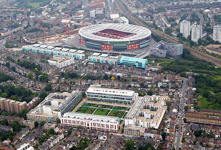 В случаях, когда новые стадионы строились не на месте старых, а переезжали в другое место, освободившиеся участки отдавали под коммерческую застройку – так частично финансировалось возведение новых арен. Классическим примером подобной схемы считается переезд «Арсенала» с исторического «Хайбери» на «Эмирейтс». Старая арена, бывшая домом клуба на протяжении 93 лет, превратилась в жилой комплекс с 655 апартаментами, стоимость которых начиналась от 660 тысяч фунтов и достигала 1,1 млн для пентхаусов. Жилой комплекс на месте «Хайбери» открылся в 2009 году. Продажа квартир помогла «Арсеналу» закрыть большую часть банковского кредит на строительство «Эмирейтс».