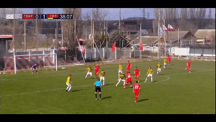 Дали мяч - фигач. Второй тайм полон гуардейской активности - пчьолок выручает мелкий фол в середине и бэк, выбивающий из ворот мяч.