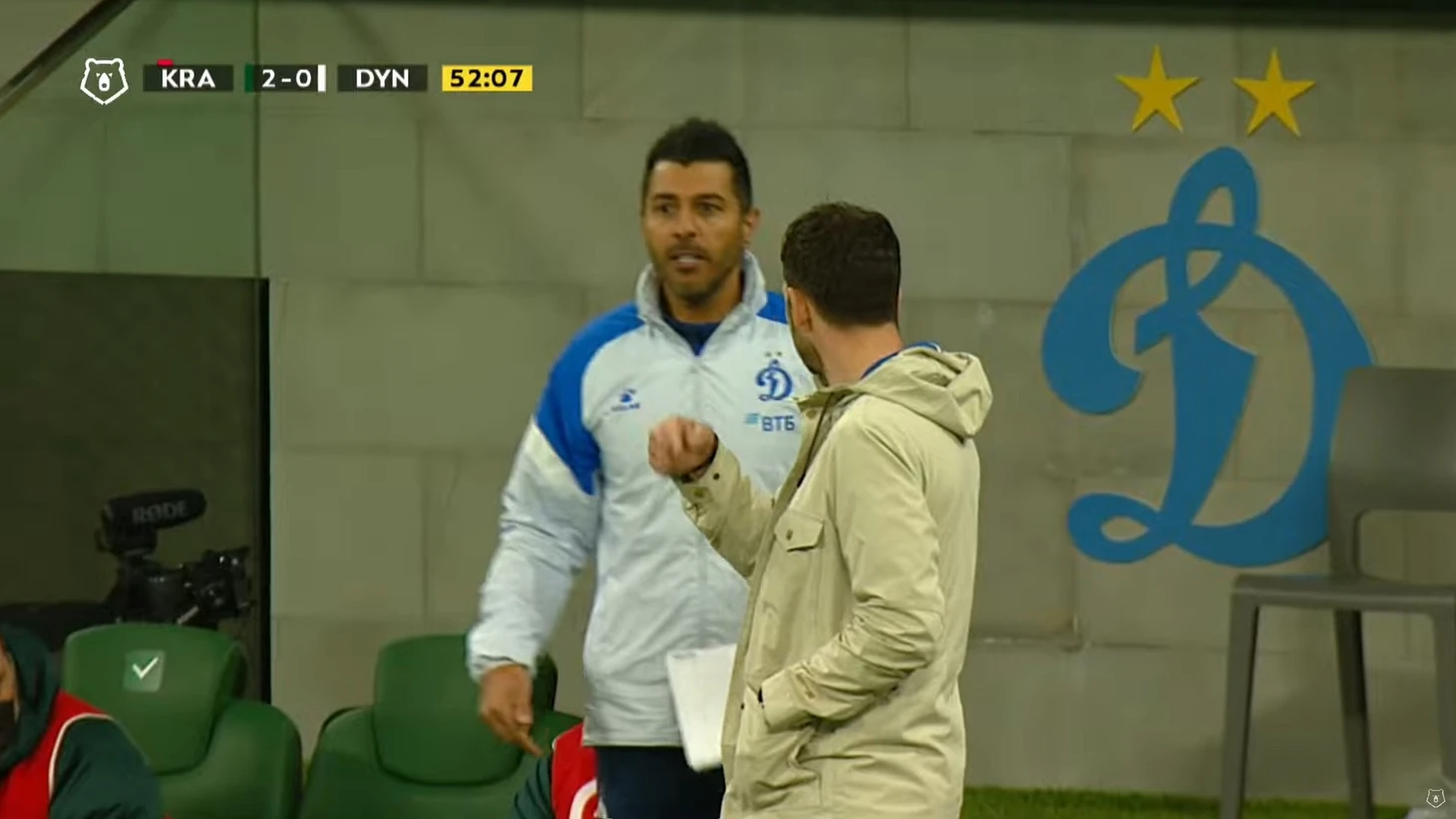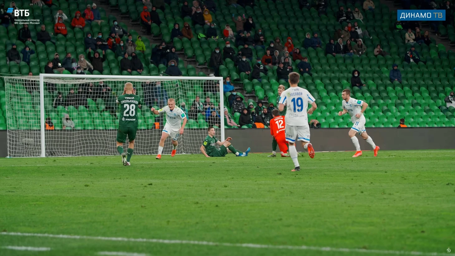 Мы прибавляем в игре, перехватывая инициативу, и это ещё с учётом того, что Арсен Захарян ещё пока находится в тени – Динамо есть в чём прибавлять, чтобы добиться положительного результата. Однако Краснодар не садится в глухую оборону, а выжидает уже своих возможностей для контратак, которые были достаточно опасным в его исполнении. А на 31 минуте мы обязаны были сравнивать счёт: после затяжной позиционной атаке мяч оказывается у одинокого Варелы, но защитник наносит крайне неточный удар с семи метров – выше ворот. В этом моменте я хочу отметить прежде всего как зарождалась эта атака, а именно открывание Фомина и точный пас Моро на него: