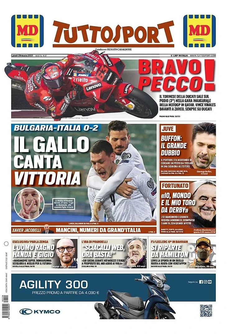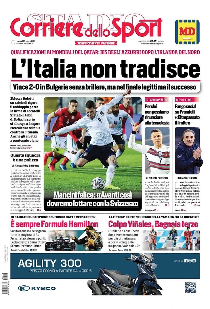 Италия не предала. Заголовки Gazzetta, TuttoSport и Corriere за 29 марта