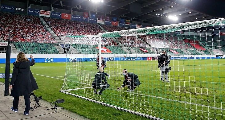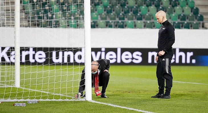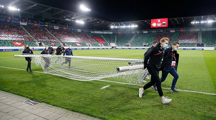 Взамен вынесли родные для стадиона ворота с бело-зеленой сеткой – в клубных цветах местного «Санкт-Галлена». Они подошли идеально – и не отклонялись от нормы.