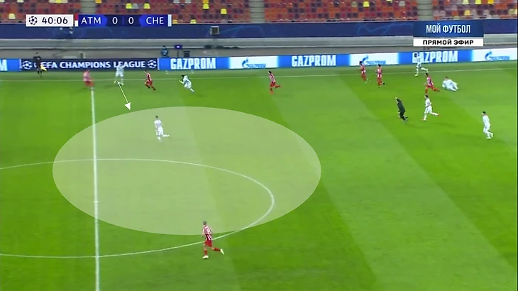 Как я и написал: Жоржиньо отошел за спину, Тьяго среагировал, открыл линию передач, Маунт подстроился, после чего последовала сама передача. По сути после этого пошла ситуация 4 в 4 в финальной трети, что является достаточно удобным сценарием для развития финальной стадии атаки.