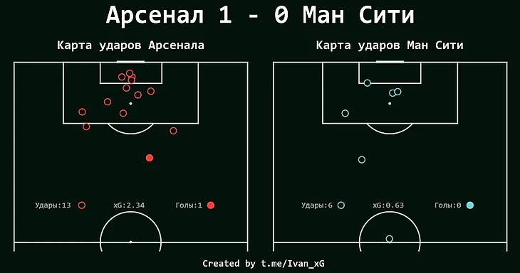 Четыре удара из опаснейших позиций у "Арсенала" против одного у "Сити" подтверждают числовые данные, но также отчасти демонстрируют проблемы с реализацией, которые сопровождали команду почти весь сезон. Но конкретно в этой игре результат принес момент максимально характеризующий игру в целом. Один из самых активных игроков этого матча после рывка, а затем удачного прессинг-действия забивает красивейший гол с мощного удара - это было так похоже на игру всей команды в этом противостоянии.