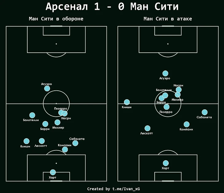 Все это приводило к падению уровня контроля мяча и наращиванию давления от команды Арсена Венгера ("Арсенал" давил "Ман Сити", трудно представить), которое становилось весьма ощутимым у самого порога штрафной.
