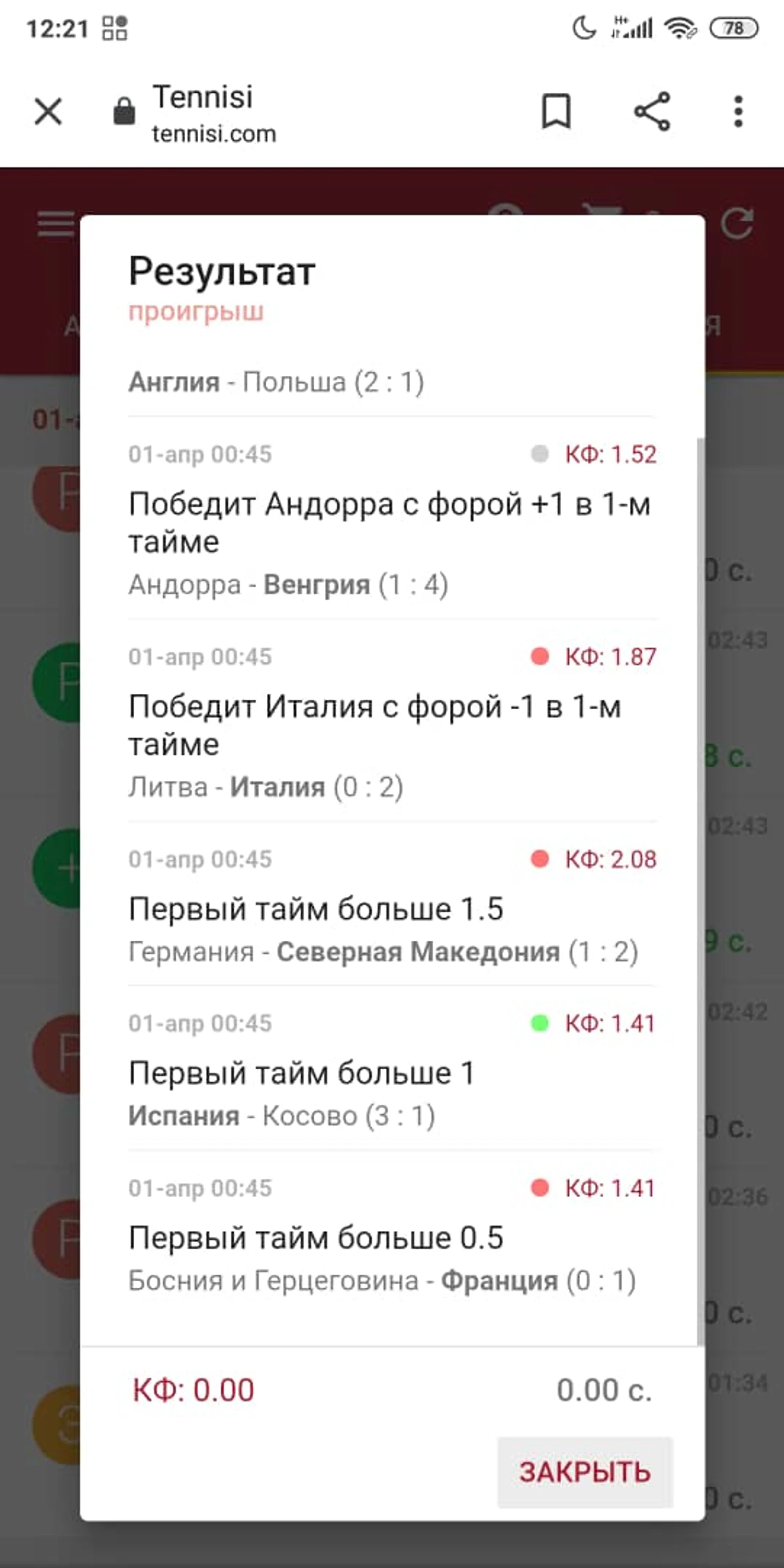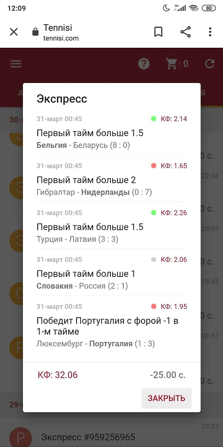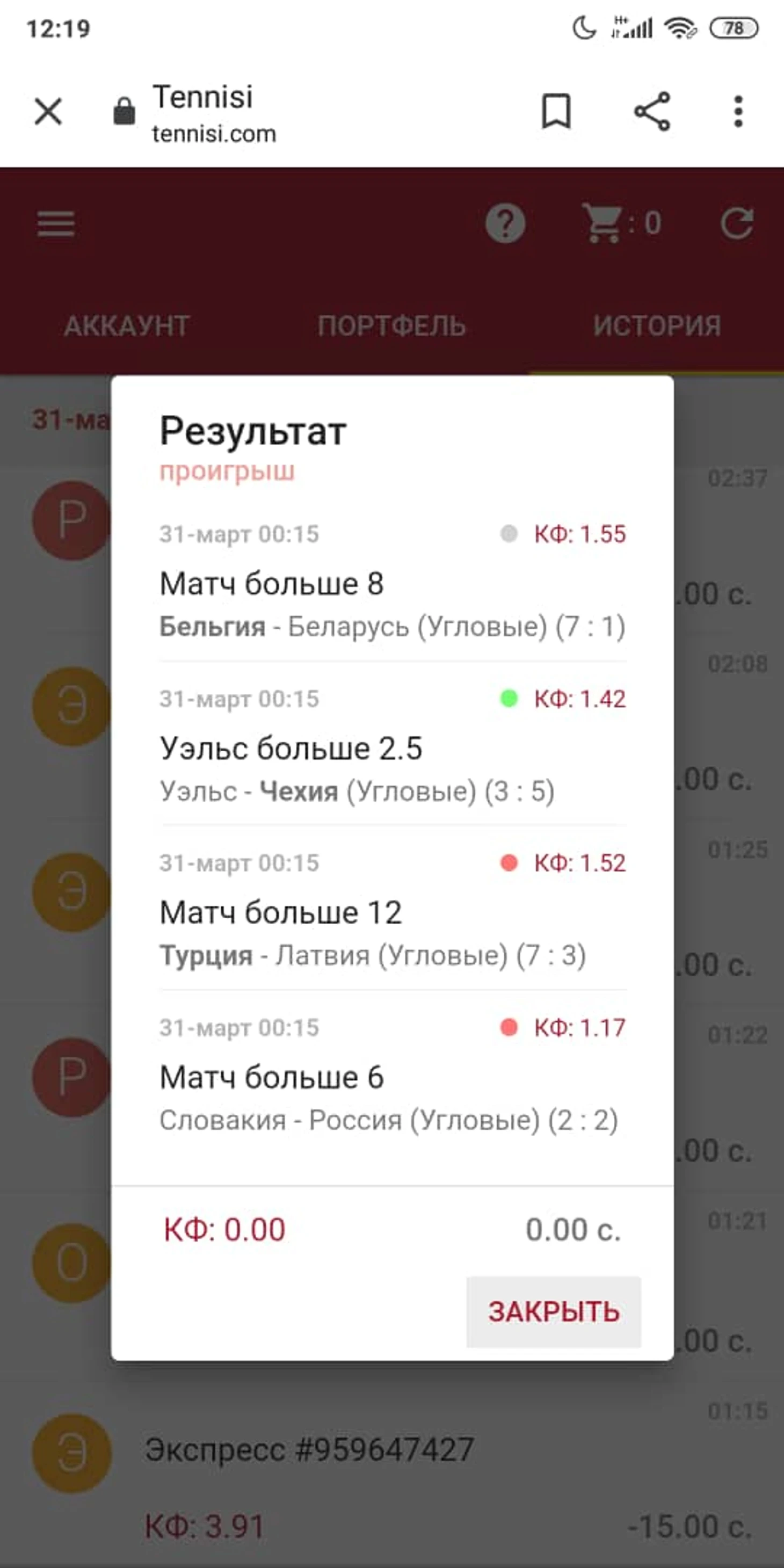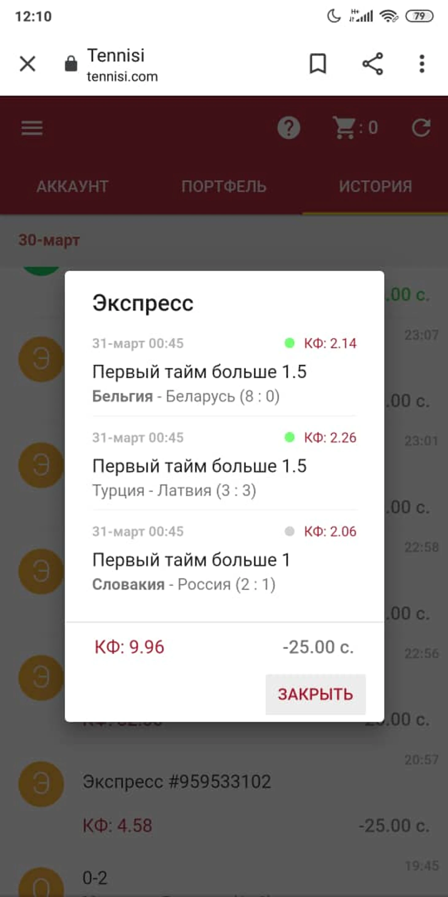 Возврат и два удачно зашедших события. Здесь выбор был прост. И Турция и Бельгия это те команды, которые могут в первом тайме сделать гол, а если случится это, вполне возможно что зайдет и второй.