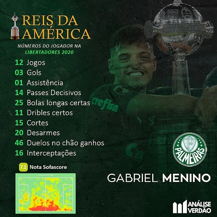 Потом пандемия. Больше четырех месяцев без игры. Снова метания между центром поля и флангом обороны. Луша больше верил в Патрика, но тихой сапой на лидирующие роли выбивался именно Габриэл, демонстрировавший удивительную стабильность и зрелость в отличие от Де Паулы. При Лушембурго Палмейрас играл не особо изощренно 4-2-3-1 и Менино занимал место в опорной рядом с Патриком или Рамиресом/Зе Рафаэлом.